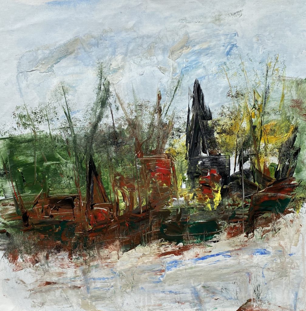 A warm and misty brush stroke finished the painting. Painting is speaking more about the thoughts or emotions but at